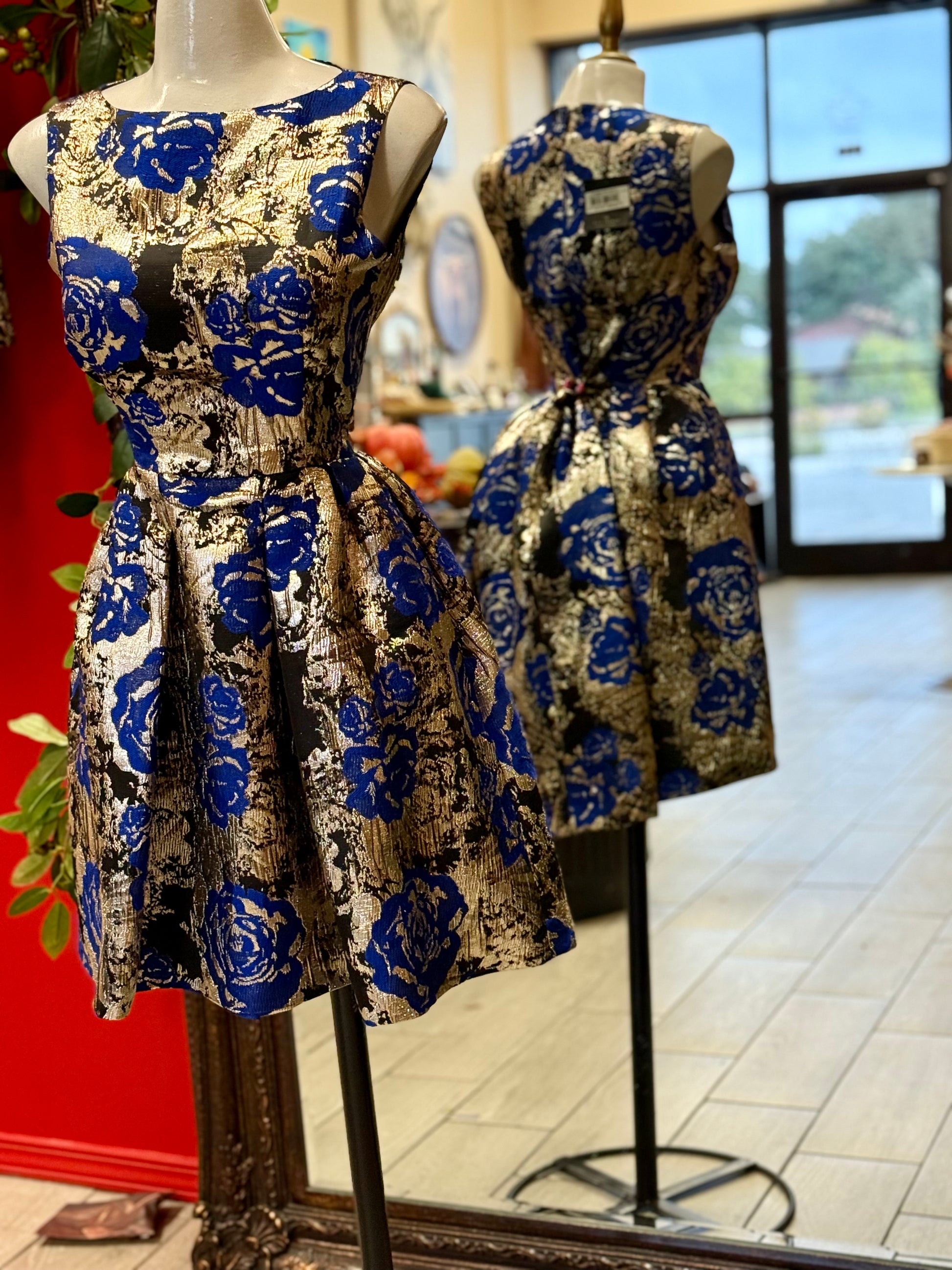 Printed Metallic Jacquard Highlow Dress