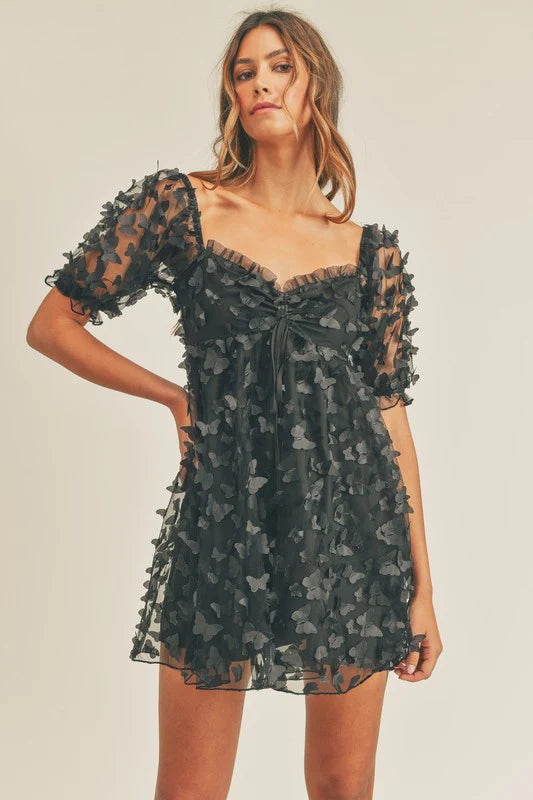 Soar into elegance with our Maroposa Babydoll Dress. This enchanting dress features delicate, three-dimensional butterfly appliqués that add a touch of whimsy to its babydoll silhouette. The lightweight fabric ensures comfort and ease, making it perfect for special occasions, or even your next concert. Whether it's paired with heels for a polished look, or sneakers for a much more casual ensemble, this dress is a one-way ticket to standing out in style.