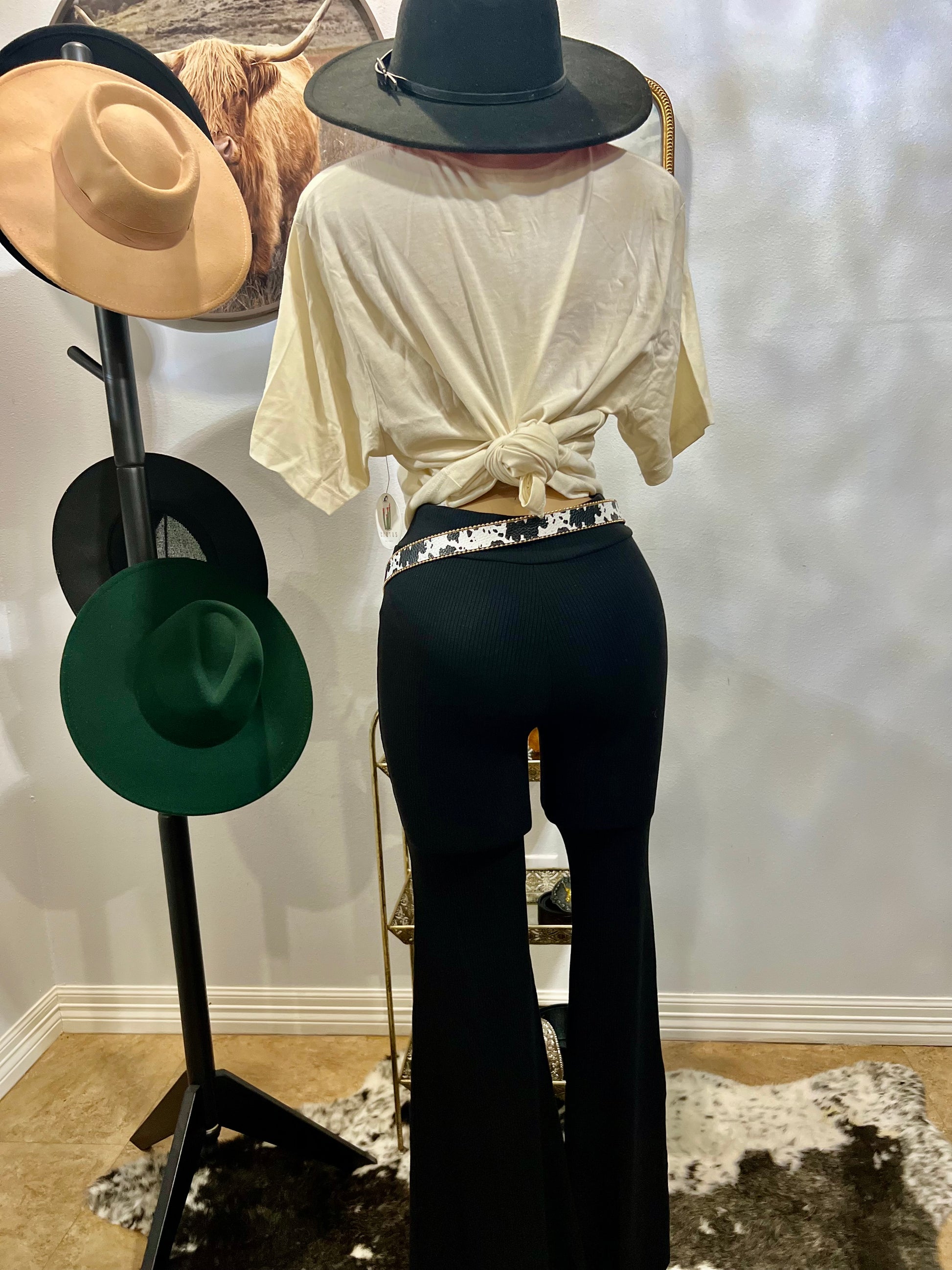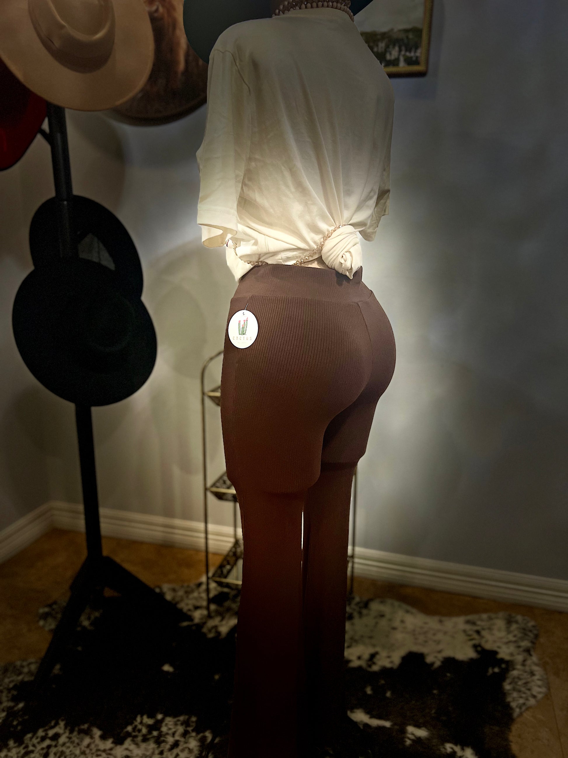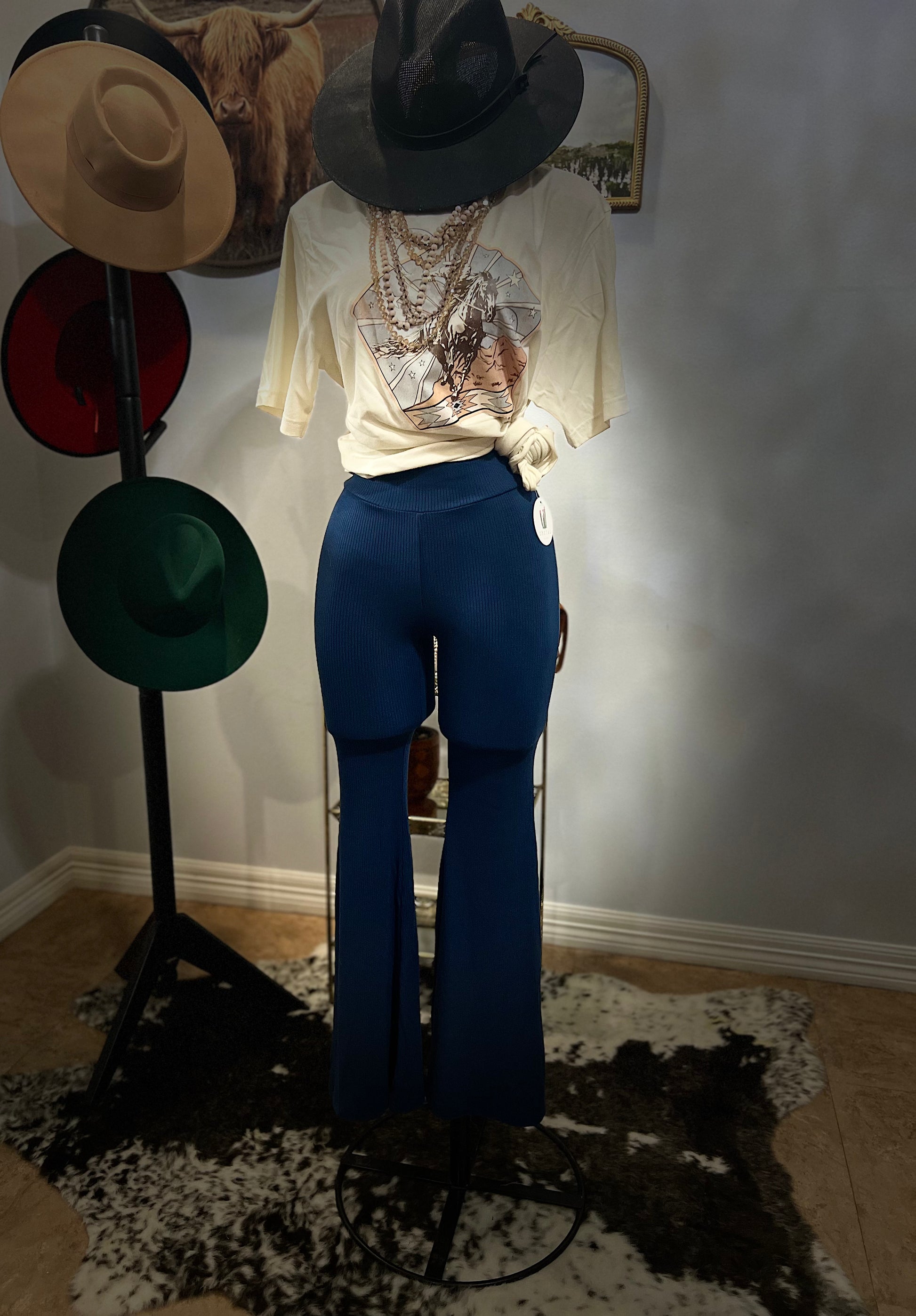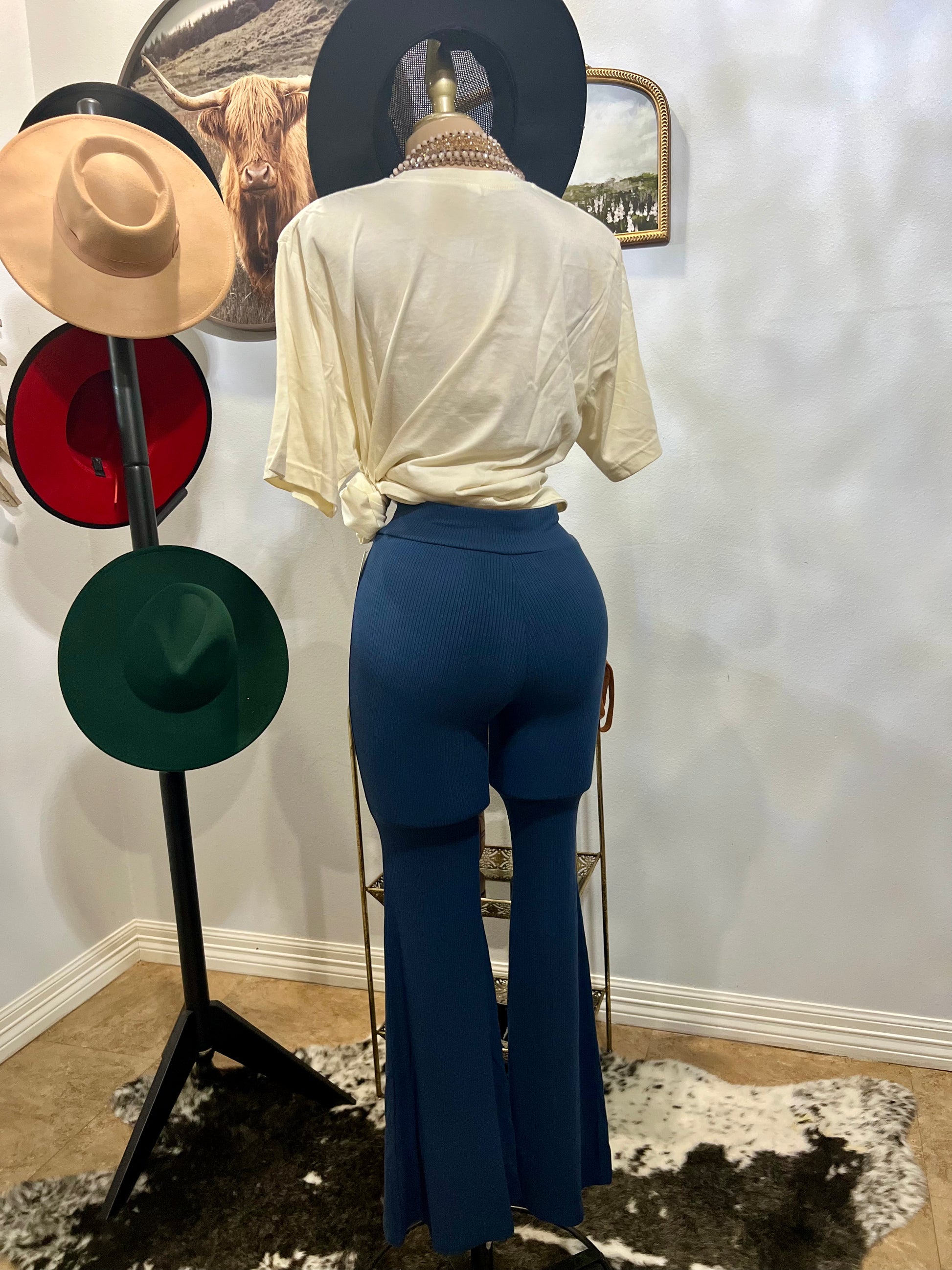 High waisted pants with wide bottom leg stretchy material