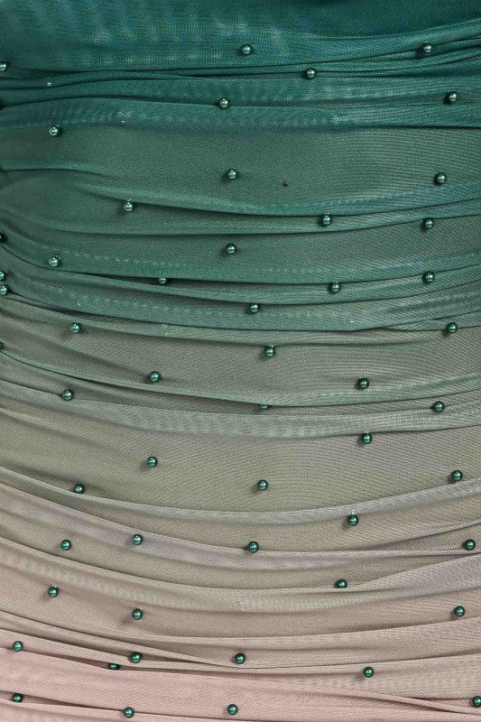 Vestido Ombre con Pedrería – Manga Larga Off Shoulder
